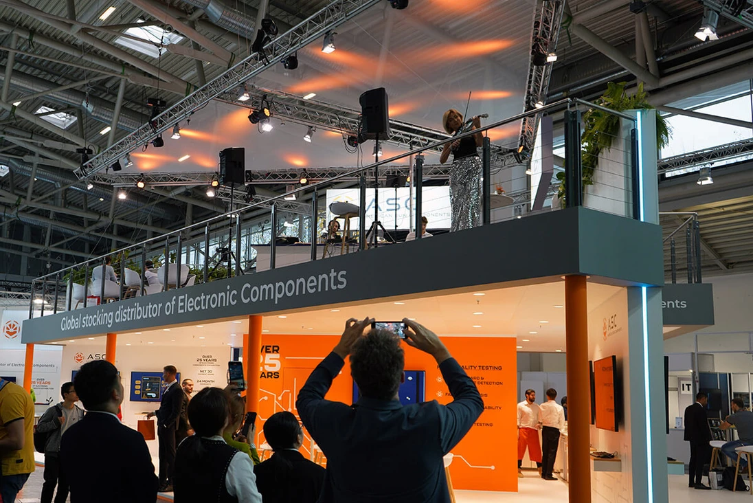 ASC hosted our own 350 square-meter booth, complete with a balcony, café seating, and a coffee and snack bar fully staffed with a barista and service team. Over the four days of the event, we invited visitors to enjoy free food and drinks and the opportunity to meet with members of the ASC team. At ASC, we believe the customer always comes first and strive to provide the best service and benefits in the international electronics industry. Electronica 2022 gave us the perfect opportunity to put that philosophy into practice for potential customers. Before leaving, everyone who stopped by got to spin our wheel of fortune for a prize. Free cocktails and vouchers for free shipping are just some examples of the items one was able to win. On the last day of electronica 2022, a professional violinist performed at the booth and enchanted the ears of every visitor in Hall B4 for several hours.