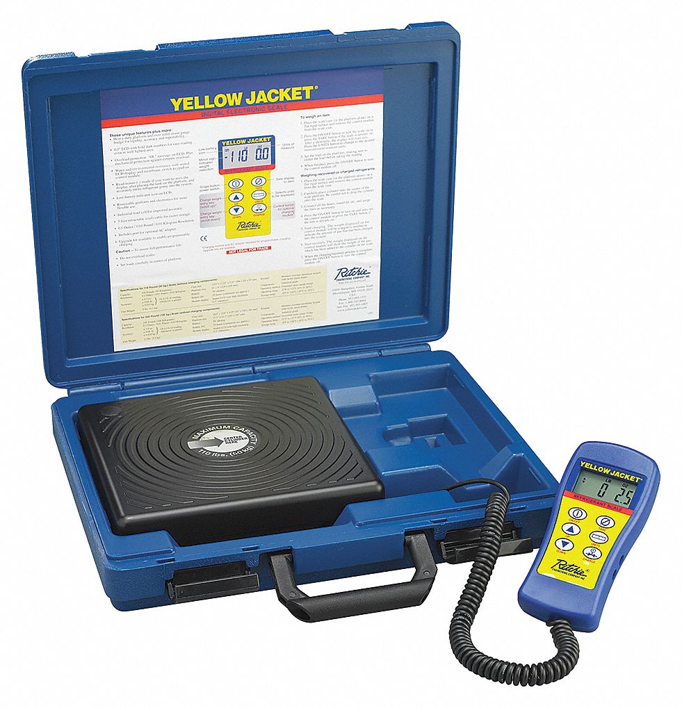 YELLOW JACKET | CHARGING SCALE, 110 LB LOAD CAPACITY, BUILT-IN DISPLAY, 9 IN H X 9 IN W X 9 IN L