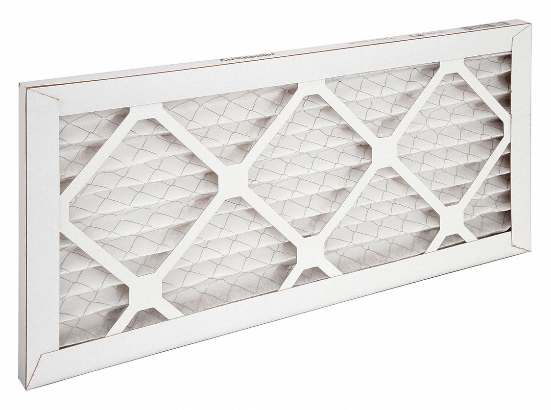 GRAINGER This panel-style non-pleated air filter has a nominal size of 30 width x 14 height x 1 inch depth. The MERV 5 filter has an efficiency of 20% and meets the UL 900 standard that removes particles ranging from 3 to 10 microns. It is made with fibreglass media and has a chipboard frame. The maximum temperature of this filter is 150 degrees Fahrenheit. Packaging: N/ASupplier Type: Partner Stock